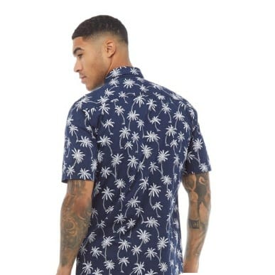Regular-fit floral print shirt in textured fabric with a comfortable, classic silhouette Resort collar, buttons without placket, short sleeves, and yoke at back.