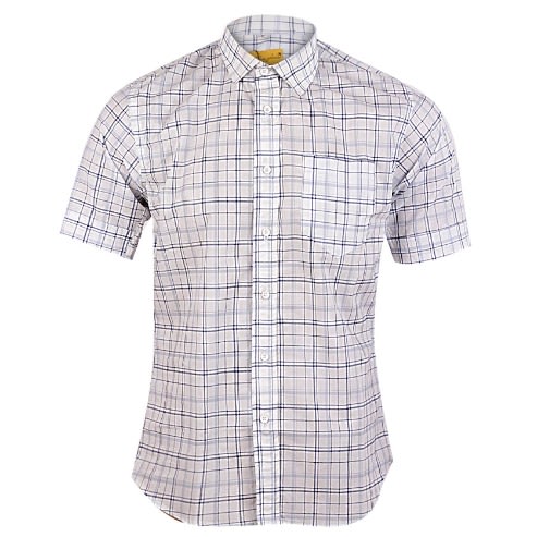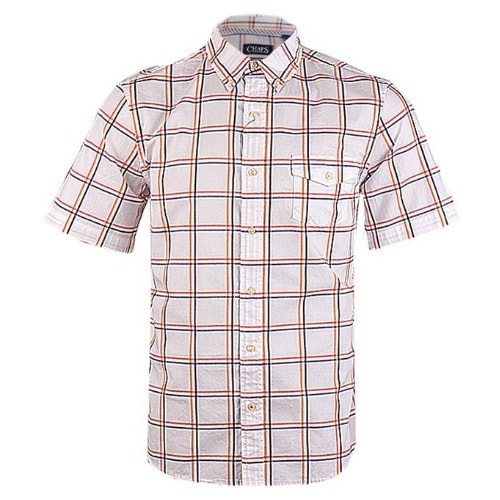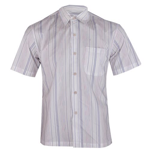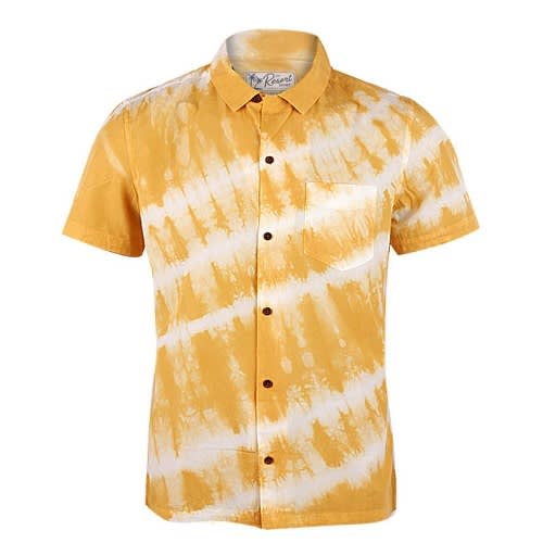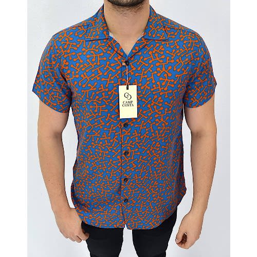 Regular fit male shirt in a woven cotton, resort collar, buttons without placket, and chest pocket. Short sleeves, yoke at the back with darts and a straight-cut hem.