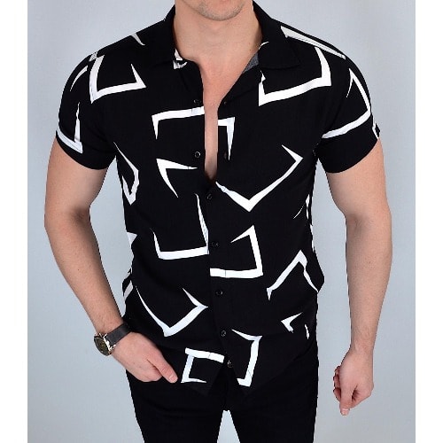 Constructed from premium-quality fabric, this shirt offers both comfort and durability, ensuring it withstands the test of time. The contrasting white and black hues create a striking visual appeal, making it suitable for various occasions, from formal gatherings to casual outings.