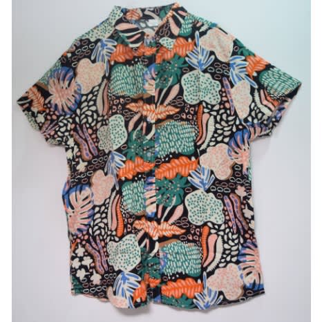 Loose-fit shirt in soft, woven cotton fabric with a comfortable but not oversized silhouette. Turn-down collar, buttons without placket, dropped shoulders and short-sleeves.