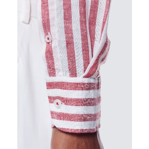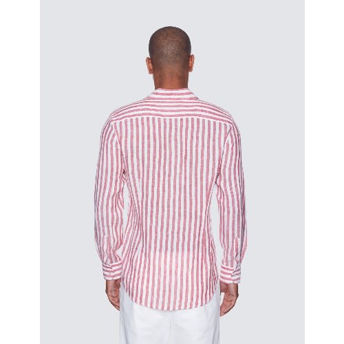 Buy Men's Red & White Stripe Collarless Linen Relaxed Slim Fit Shirt in Nigeria