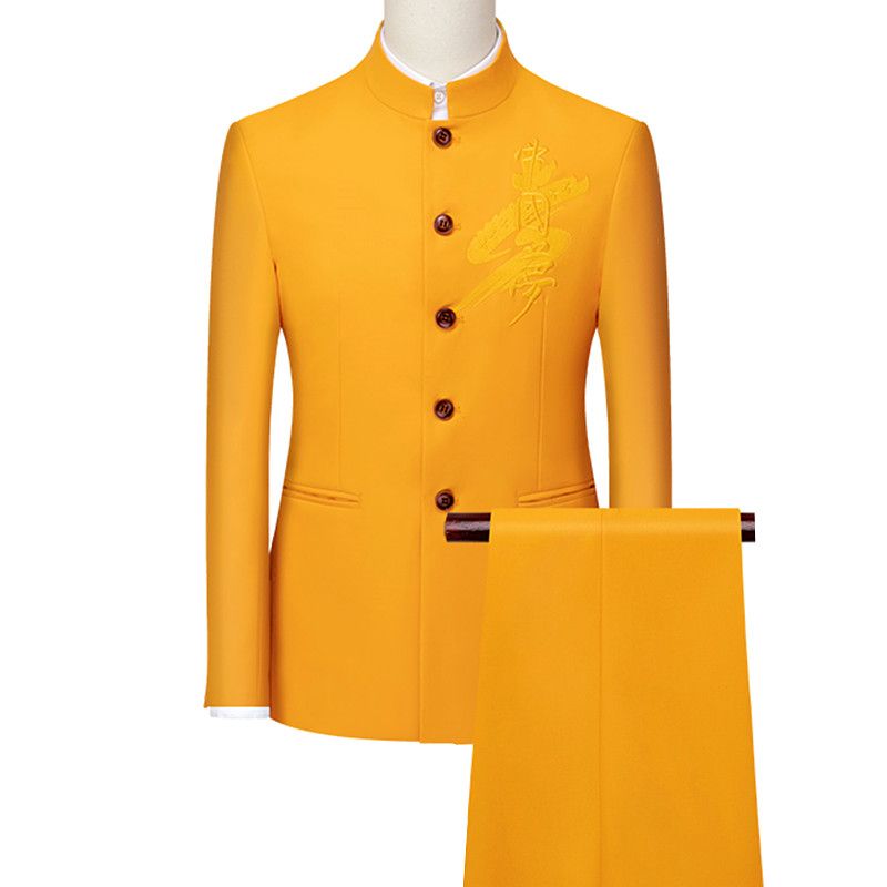 1X Fashion Brand Mens Retro Wedding Party 2-Piece Set (Blazer+Pants) Luxury Embroidery Men Tang Suit Plus Size S-6XL