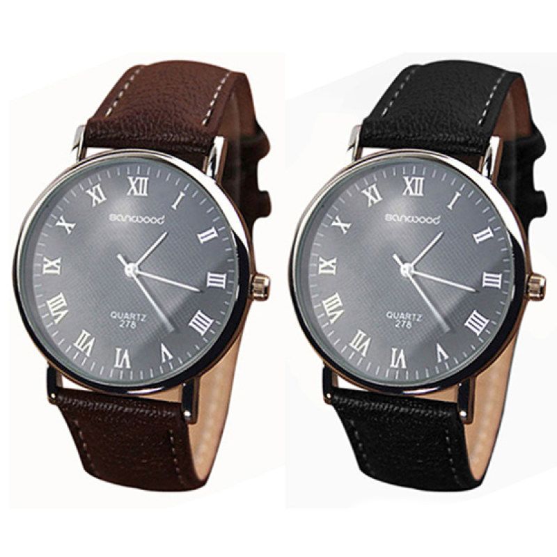 Buy Men\'s Roman Numerals Dial Faux Leather Band Quartz-Black in Nigeria