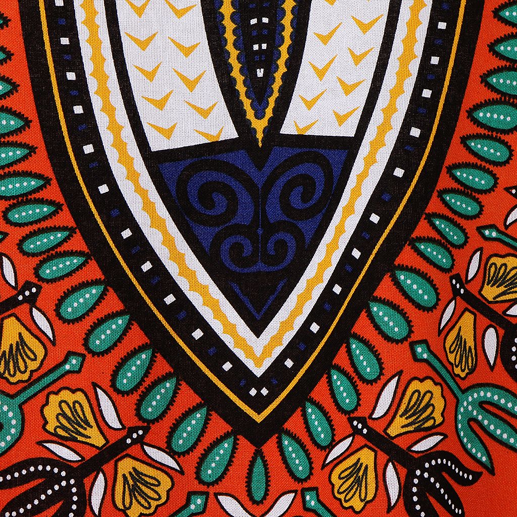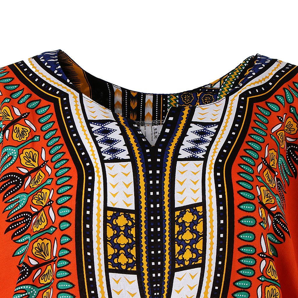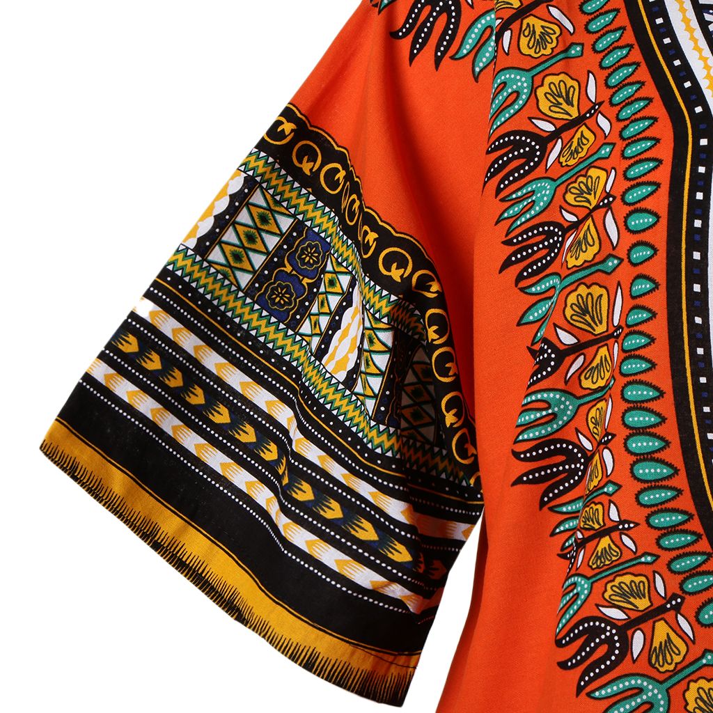 Unisex African Prints Dress Cotton Dashiki Shirt Ethnic Caftan Orange