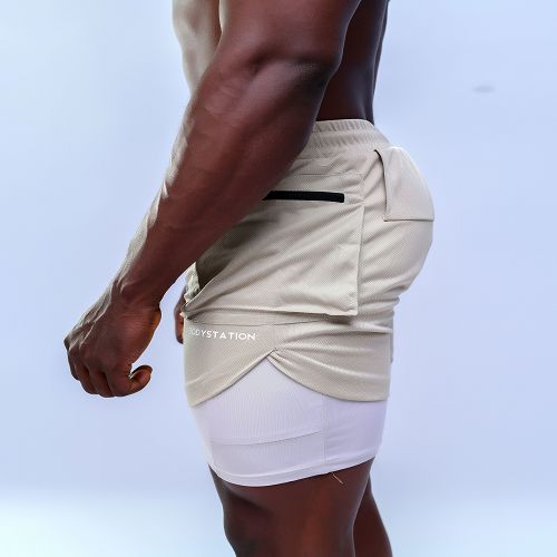 Whether you are going for a run or training for strength, these shorts are designed for unrestricted movement and have a lightweight feel. They are smooth to the touch with extra breathability, feature a full-length internal short liner for extra coverage and support, as well as secured storage pockets for personal items. There's even zippered side and back pockets to help keep your keys or card from falling out. Benefits2-in-1 design with the shorts integrating directly with the tights for support that moves freelyNarrow waist band with drawcord for adjustable supportSide pockets for secure storage helps keep items like keys or cards closeZippered back pocket for small itemsTowel loop to fasten your towel or shirt while you workoutStandard fit for a relaxed, easy feelShort inseamInternal short linerMade from Polyester & SpandexMachine washImported
