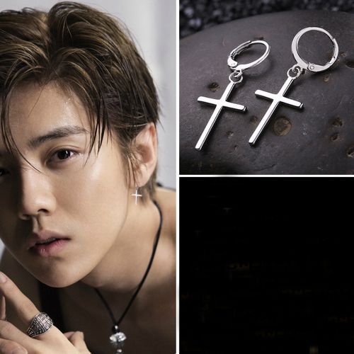 Series: Men's Silver Cross Earrings;