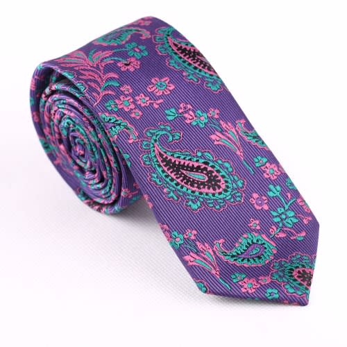 Lovely Men's Slim Tie, Blue with wine colour pattern.