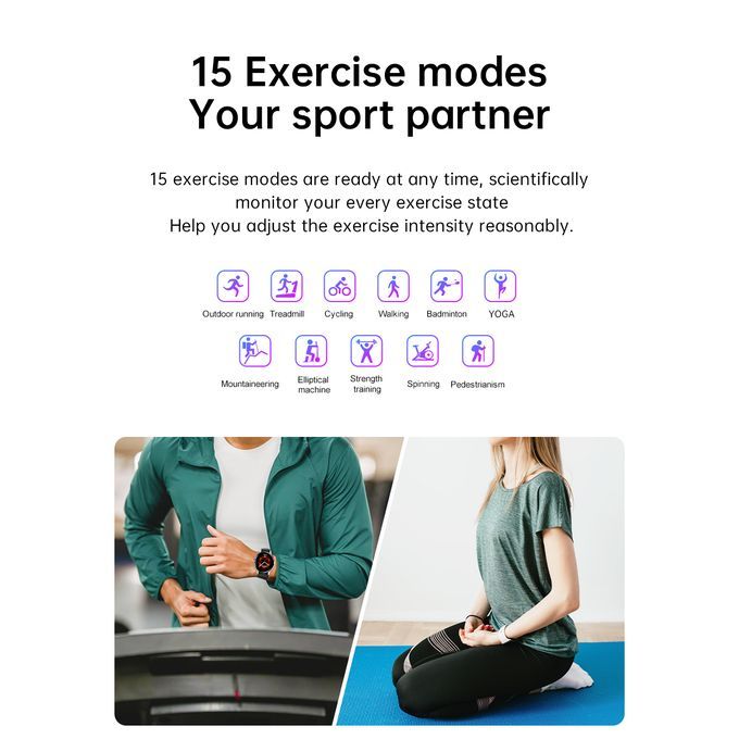 15 Exercise modes, blood oxygen monitoring, your sport partner