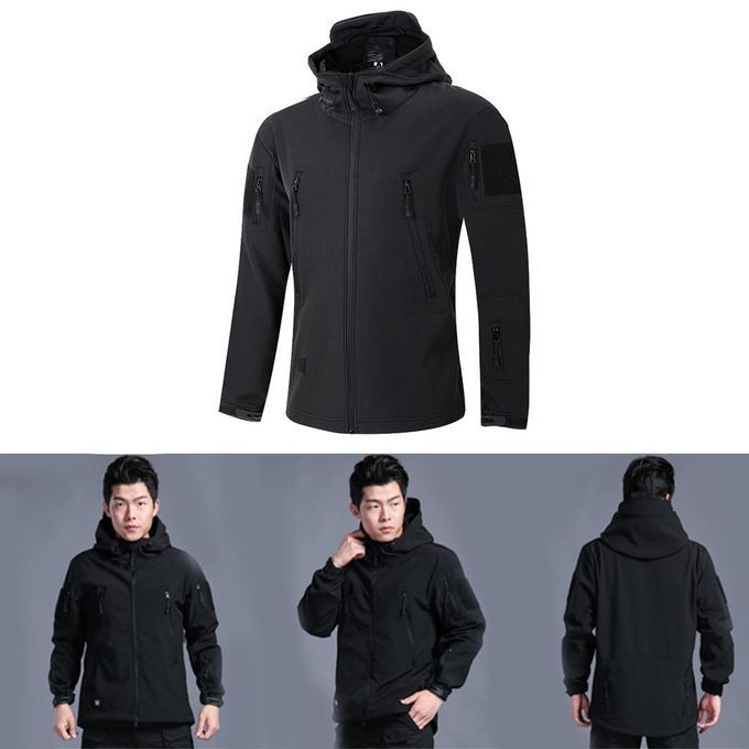 Mens Softshell Hiking Jacket Hooded Waterproof Lightweight 2XL Black