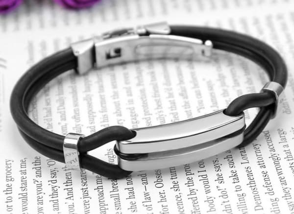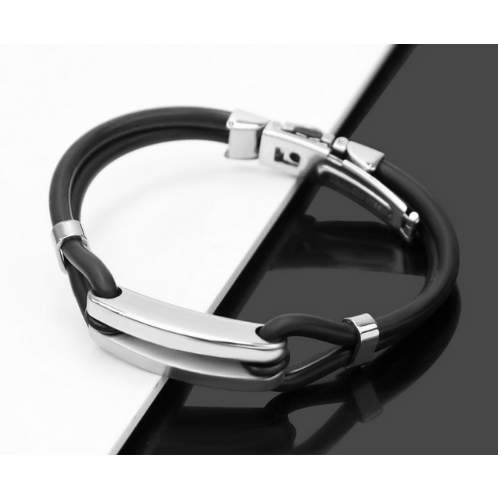 Buy Men's Stainless Steel Bar Black Rubber Bracelet in Nigeria