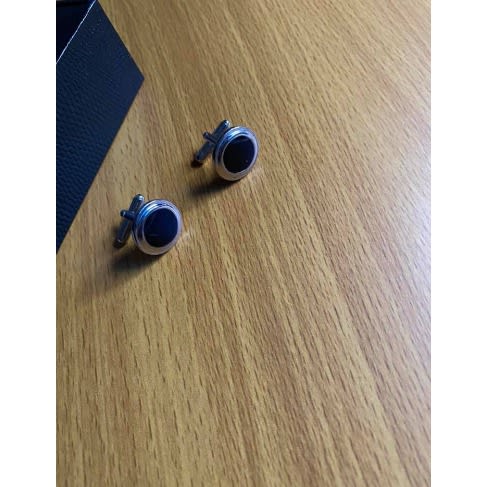 Buy Men's Stainless Steel Silver Round Black Cuff Links in Nigeria