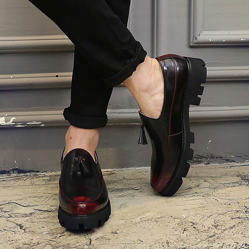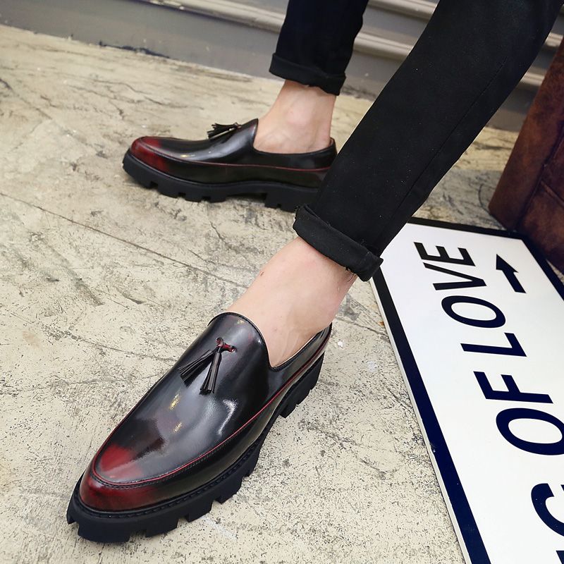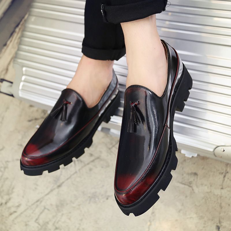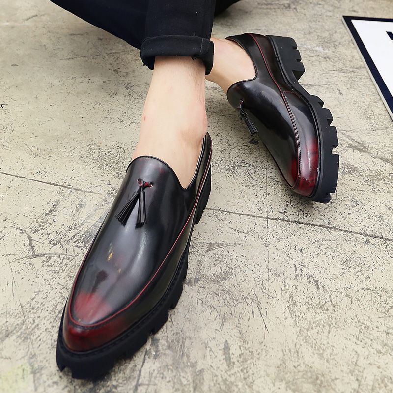 Men's Thick-Soled Pointed Leather Shoes Business Shoes Red |