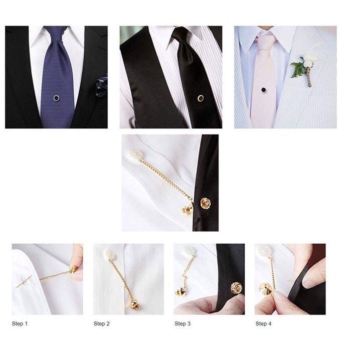 The button size is 1×1.2cm/0.39×0.47inch, and the chain length is 4.5cm/1.77inch. The delicate and small tie pins can hold your tie in place without covering up the color of the tie.