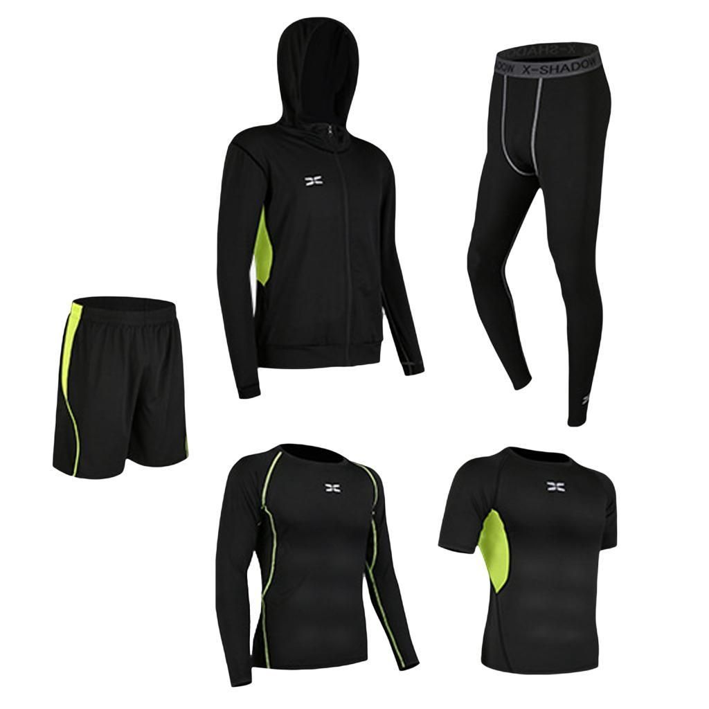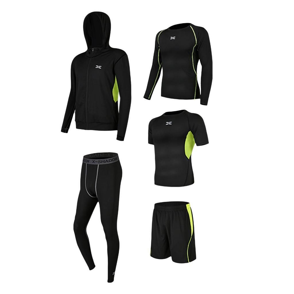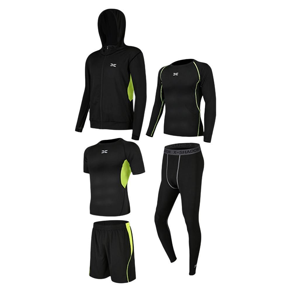 5 in1 design, includes: short sleeve shirt, long sleeve shirt, short pants, long tight pants, zipper jacket.Breathable sports fabric, quick drying, high elasticity makes it fits for most men.Absorb sweat quickly, and wear comfortable with stylish fashion look.Suitable for all sports activities at home, gym or any other occasions you want.Perfect gift set for your husband, son, boyfriend, dad and yourself.