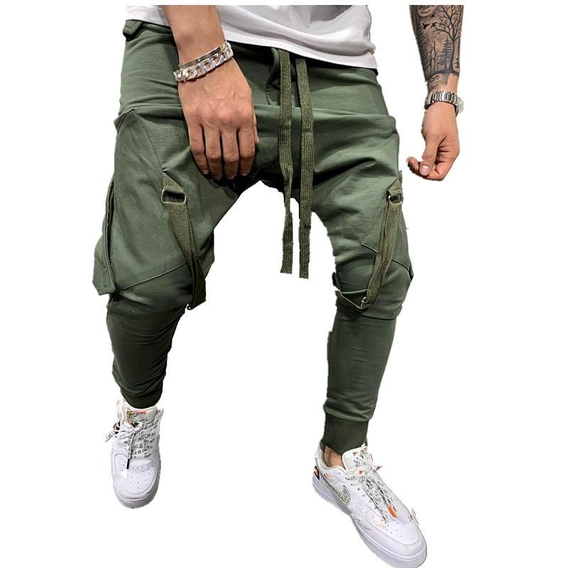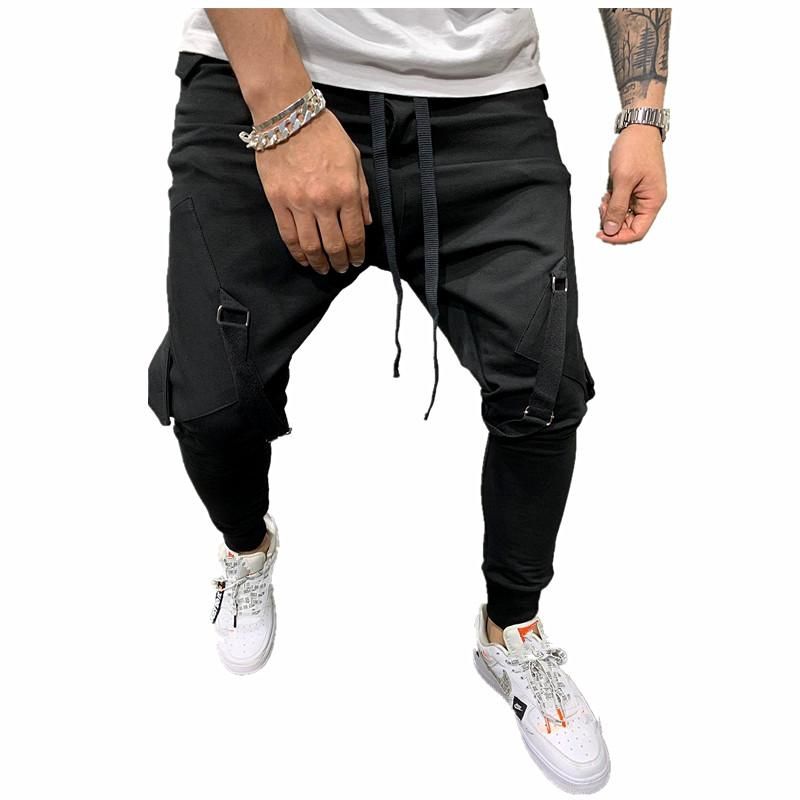 'Men's pantalones de chandal con Tether Hip Hop Bolsillo grande y correas de pierna pantalones de chandal Casual Pantalones largos