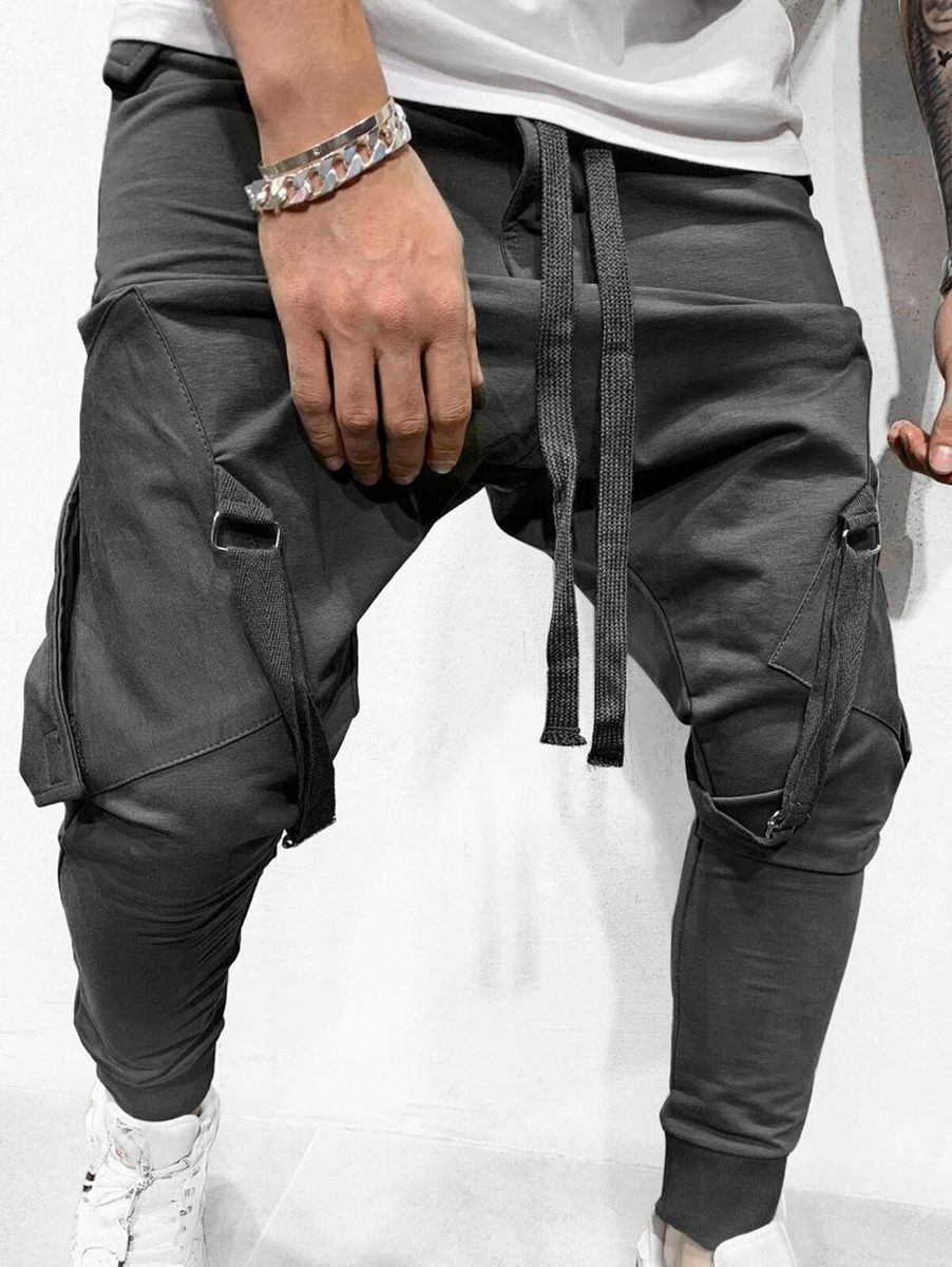 1X 'Men's pantalones de chandal con Tether Hip Hop Bolsillo grande y correas de pierna pantalones de chandal Casual Pantalones largos
