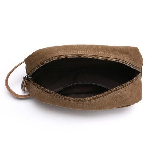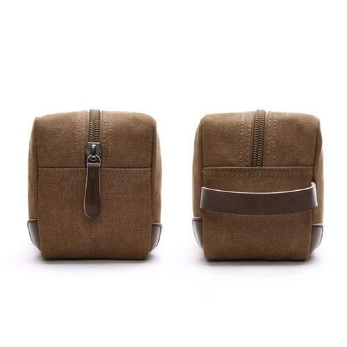 Shaving Dopp Kit, made of canvas, no smell and eco-friendly. And decorated with leather. A handle for easy carrying. Thick large zipper makes it easy to zip and unzip.