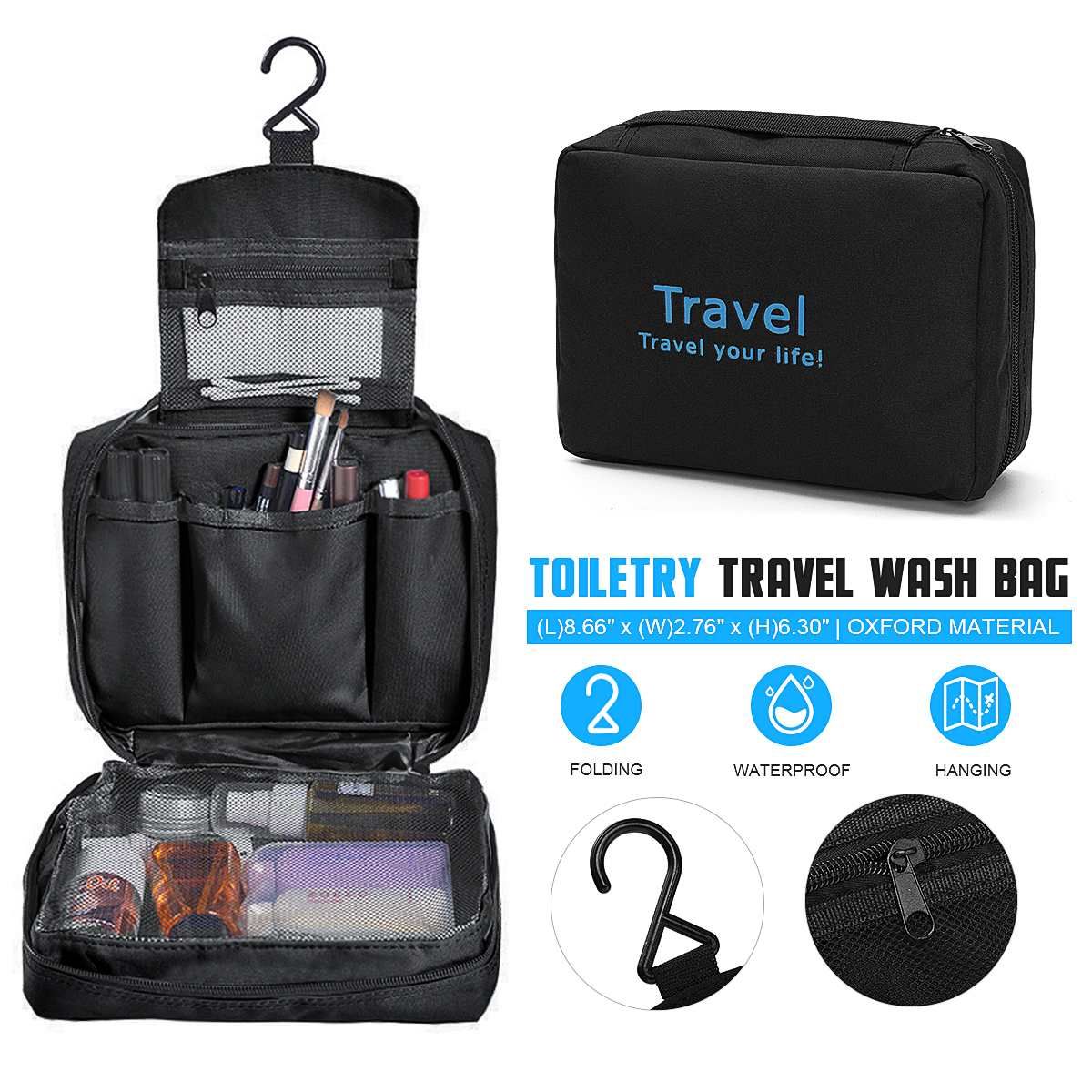1 * Mens Travel Wash Shower Bag Hanging Toiletry Organizer Kit