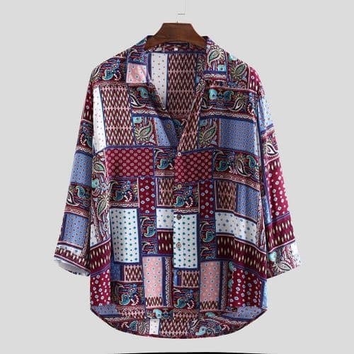 Buy Men's Vintage Loose Long Sleeve Shirt - Multicolor in Nigeria
