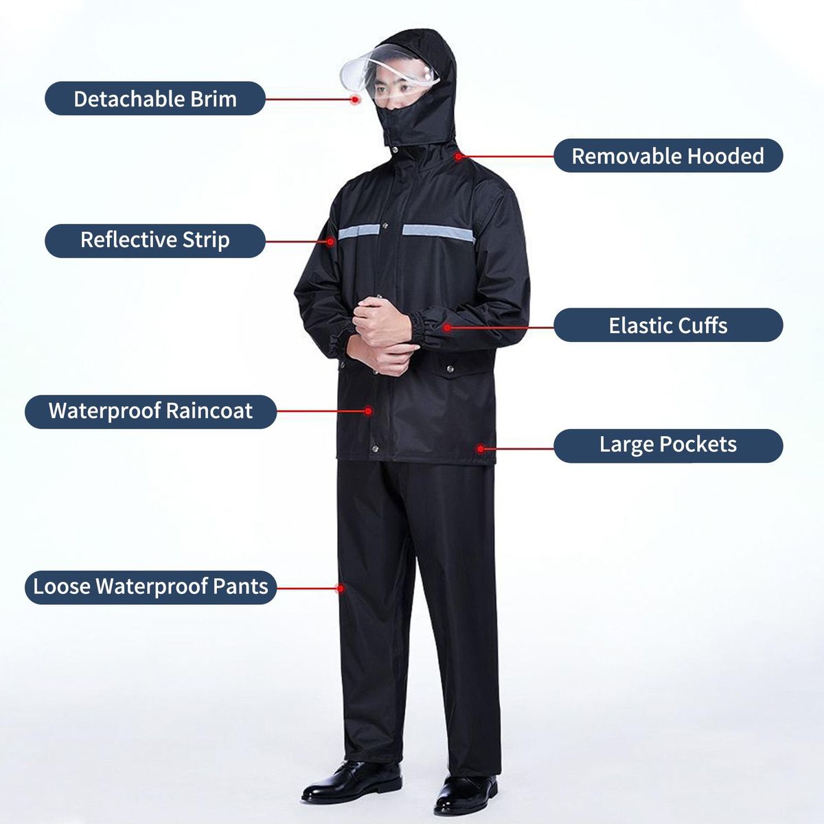 Buy Mens Waterproof Rain Suit with Reflective Strip Waterproof Jacket Trouser Suit Raincoat Windproof Hooded Rainsuit for Fishing Campimg Outdoor Activity in Nigeria