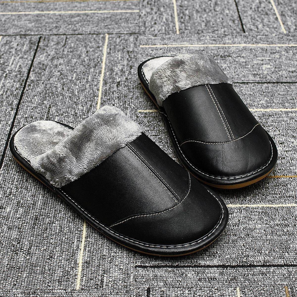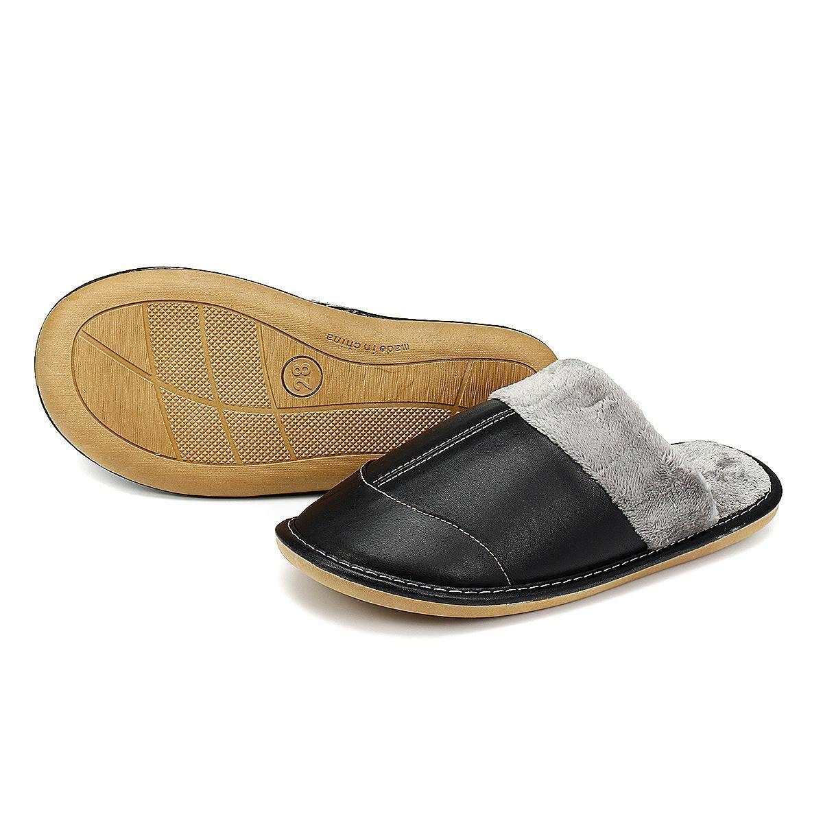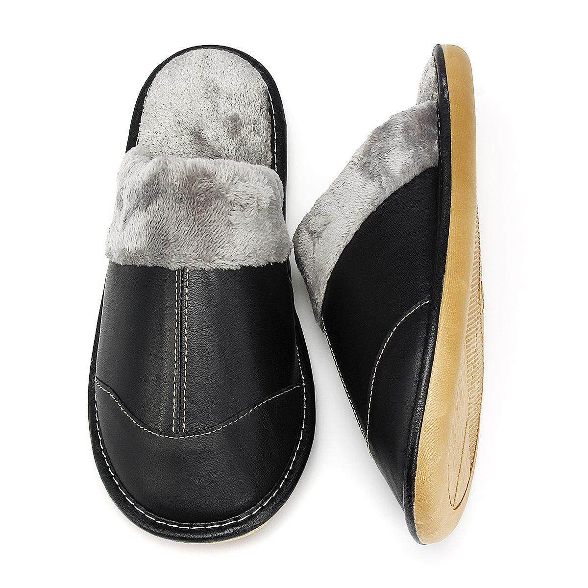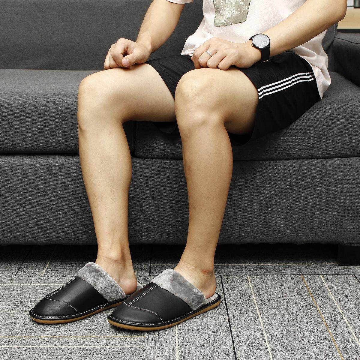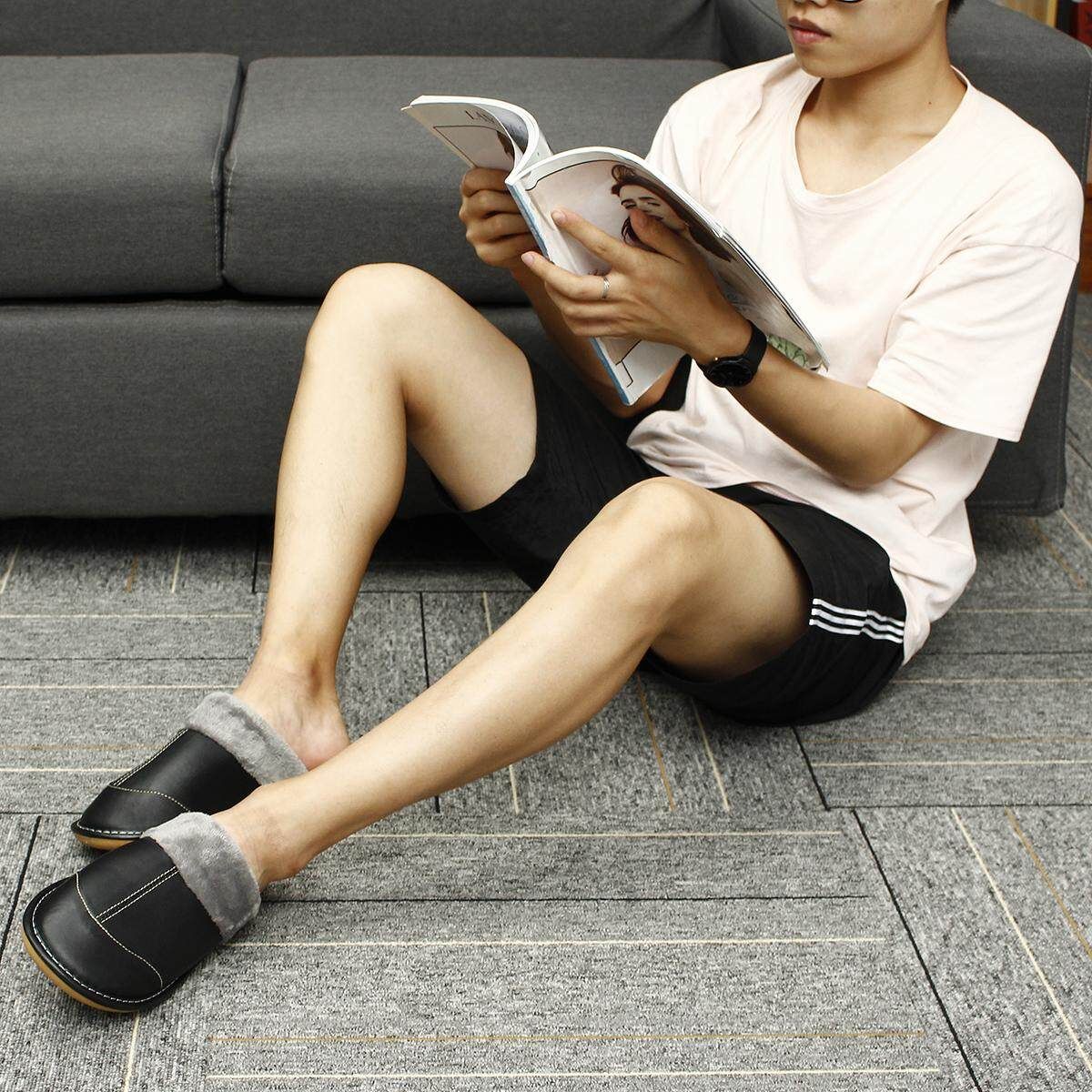 Men's Winter Warm Fuzzy Lamb Leather House Slipper Fleece Lined Home Casual