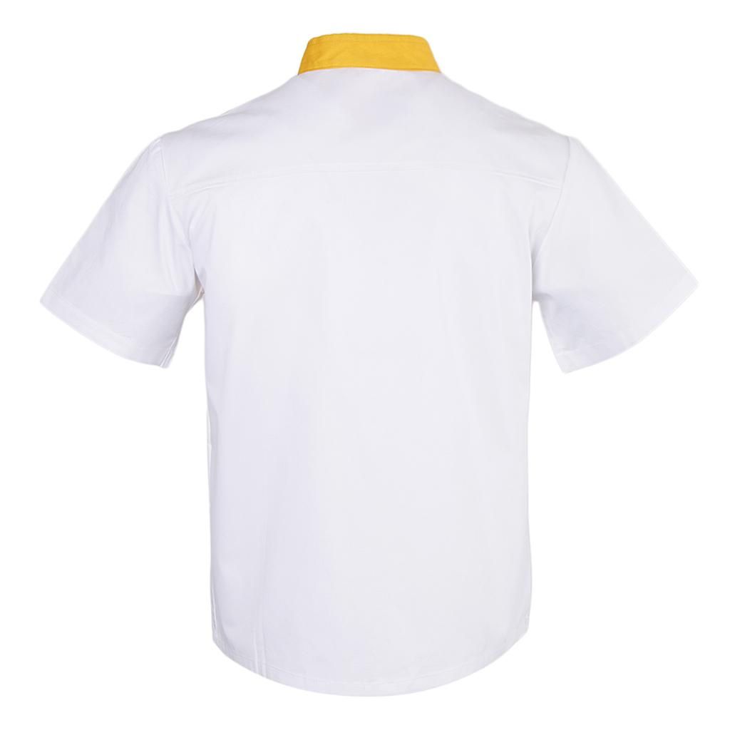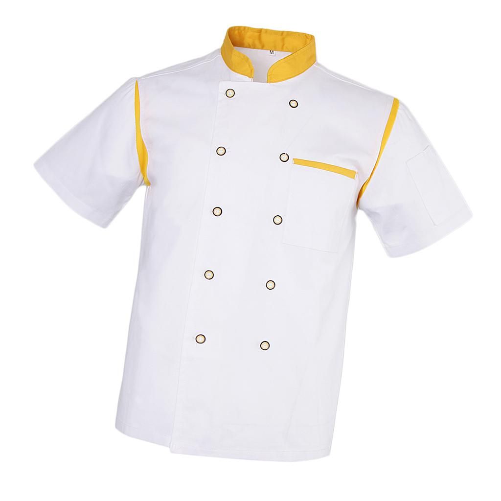 Short sleeve chef jacket coat cook hotel uniform for men womenLeft arm pocket and pen pocket design, durable polyester cotton blend material Air mesh design in the underarm, perfect for heat dissipation and make you feel cool.Quick-drying, wrinkle resistant, soil-release, breathable chefwear coat.Great for waiter uniform, professional work clothes for restaurant hotel and other cook work.