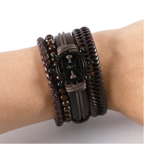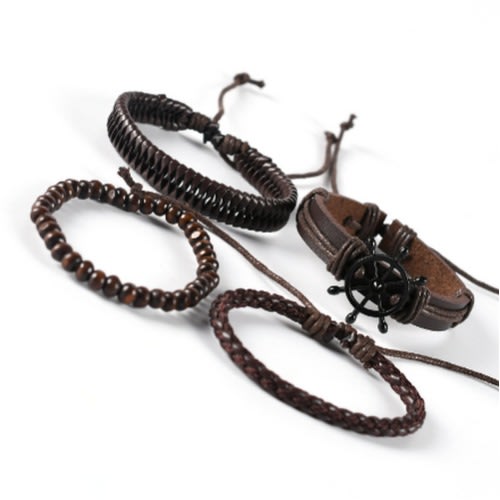 Buy Men's Woven Leather Bracelet- Brown - 4pcs in Nigeria