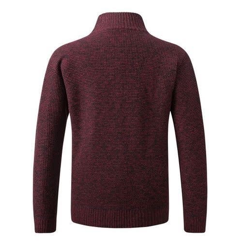 Men's Zipper Cardigan - Thick Cotton - Long Sleeve - Red