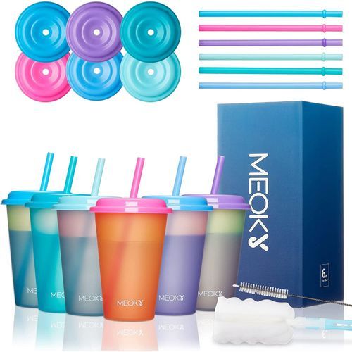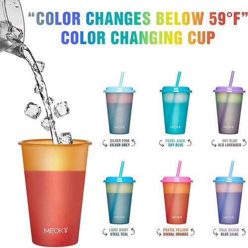 Meoky color changing tumblers with lids and straws make drinking more fun and interesting. The cups are great for parties, weddings, bachelorette parties, beach days and sports events. Enjoy every moment of your happy life with your family and friends with reusable plastic cups.