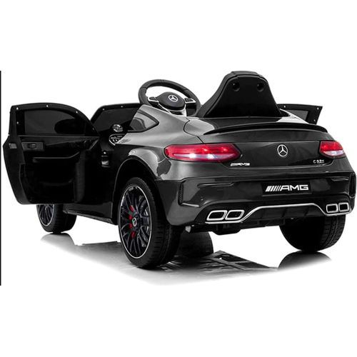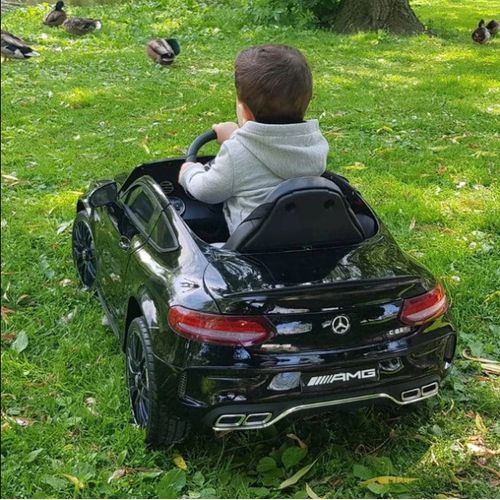 Mercedes AMG Ride-on car with parental remote controls, making it fun for you and your child. The 12v Mercedes C63 AMG Kids Sports Car is just a superb looking, well constructed ride-on with easy assembly and top quality paintwork - Cool SUV.. Made under official license from Mercedes this is a real show stopper and sure to be the pride and joy of any child, complete with 2.4G Remote control and an authentic looking spare wheel at the back Complete with an MP3 plug in your little one can borrow your iPod to blast out their favorite tunes. Features: Working lights Opening Doors Strong Tires Large single seater and is fitted with a seat belt for additional safety A realistic scale replica of a real Mercedes AMG C63 Fully licensed by Mercedes Powerful 12v battery and two motors Parental remote included Led Day Lights.
