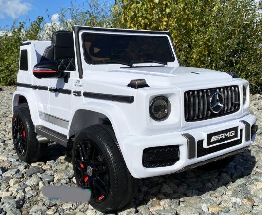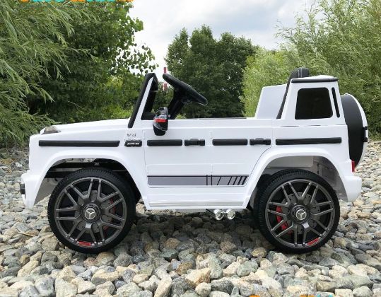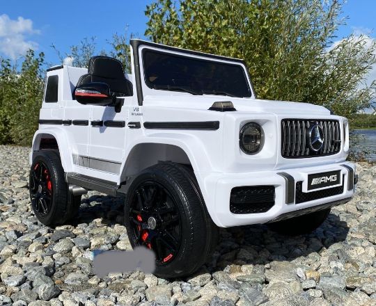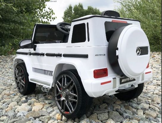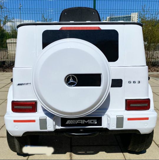 This amazing looking electric kids ride on jeep is a fully licensed Mercedes G63 AMG Ride-on Jeep with parental remote controls, making it fun for you and your child. The 12v Mercedes G63 AMG Kids Sports Car is just a superb looking, well constructed ride-on with easy assembly and top quality paintwork - Cool SUV.. Made under official license from Mercedes this is a real show stopper and sure to be the pride and joy of any child, complete with 2.4G Remote control and an authentic looking spare wheel at the back Complete with an MP3 plug in your little one can borrow your iPod to blast out their favorite tunes. Features: Working lights Opening Doors Strong Tires Large single seater and is fitted with a seat belt for additional safety A realistic scale replica of a real Mercedes AMG G63 Fully licensed by Mercedes Powerful 12v battery and two motors Parental remote included Led Day Lights.