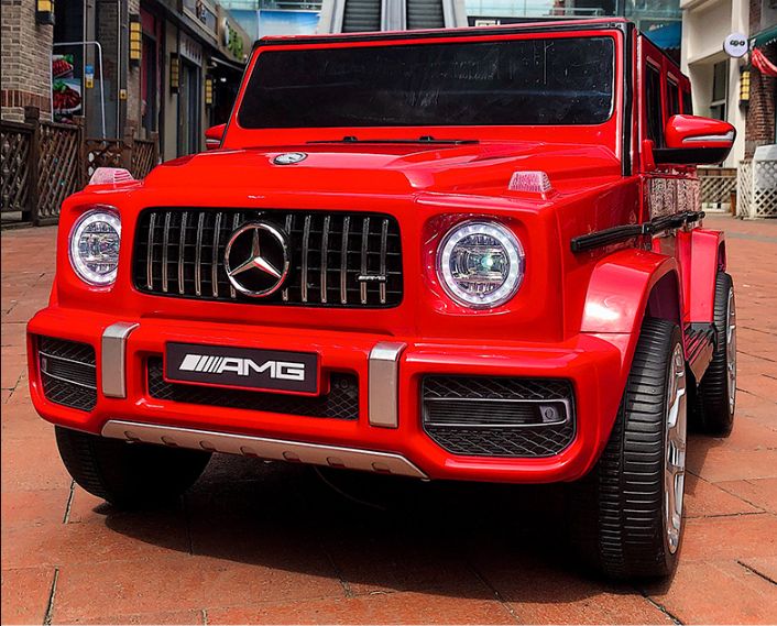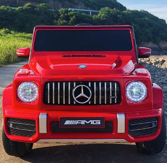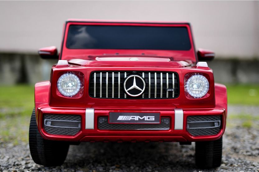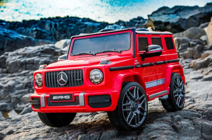 The Mercedes Benz G63 AMG kids ride on car features an impressive and distinctive exterior design and a solid build. It has powerful twin motors for exhilarating performance, all-wheel suspension for shock-absorbing and ultimate comfort, premium slip-resistant tyres and smooth acceleration to prevent sudden jerks and stops, and a spacious seat and belt for maximum comfort and protection. Plus, it has brilliant headlights, a blue-hued dashboard, and other functions like horn, music control panel, battery indicator and forward/back switch for a real-like driving experience. Not least, it is battery operated with two hours runtime and comes with a SAA-approved charger for safer and faster charging. The remote-control function and park button ensure the safety of the child.