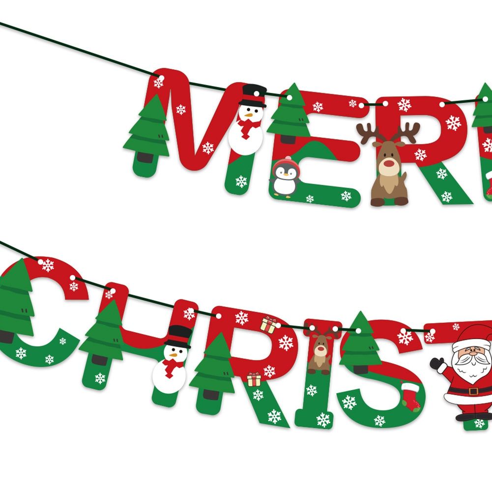Merry Christmas Balloons Santa Claus Elk Christmas Party Christmas Tree Paper Banner Decorations for Home New Year B
