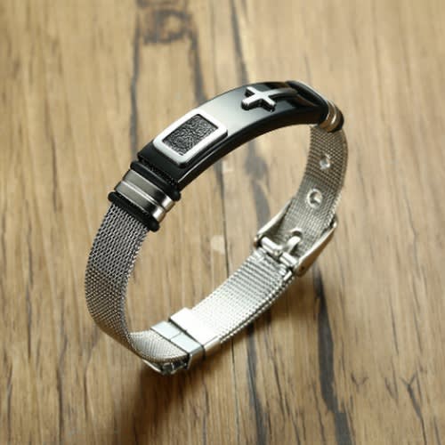 Buy Mesh Christian Cross Bracelet - Silver And Black in Nigeria