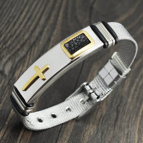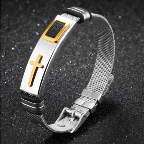Buy Mesh Christian Cross Bracelet - Silver And Gold in Nigeria