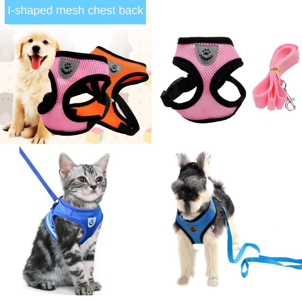 -Cat Dog Adjustable Harness Vest Walking Lead Leash.- I-shaped mesh vest for puppy dogs small medium dog cat pet.-Adjustable, can be adjust according to your pet size.-Breathable and comfortable to wear.-Heavy-duty, durable to use.