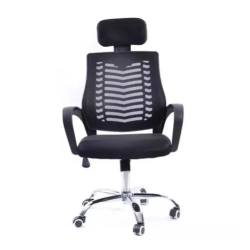 Item is not assembled on delivery but assembly is easyThis Lower back revolving office chair is super comfortable and good for use bothe at home and at the office.It features an external back support to keep you comfortable for as long as you need. It is very durable and long lasting. It has adjustable and lockable functions inbuilt for maximum comfort and relaxation even while working.Material: Mesh.