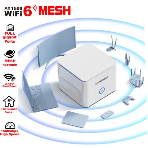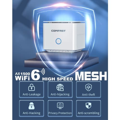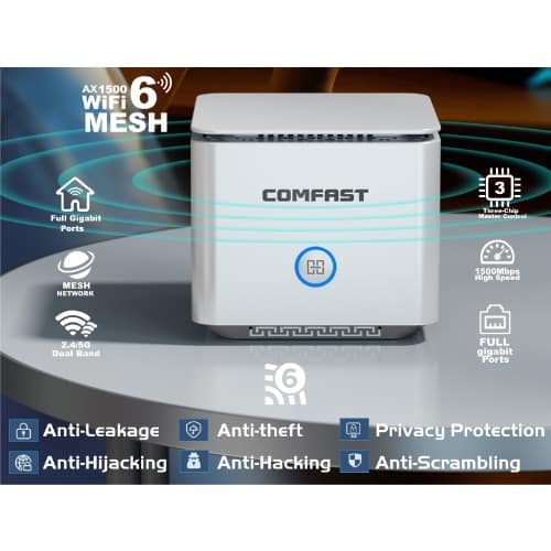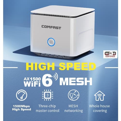 CF-WR653AX router complies with WiFi6 standard, providing you with a fast internet experience. Adopting Mesh technology, with Meshbuttons for easy pairing, one-click networking for full coverage