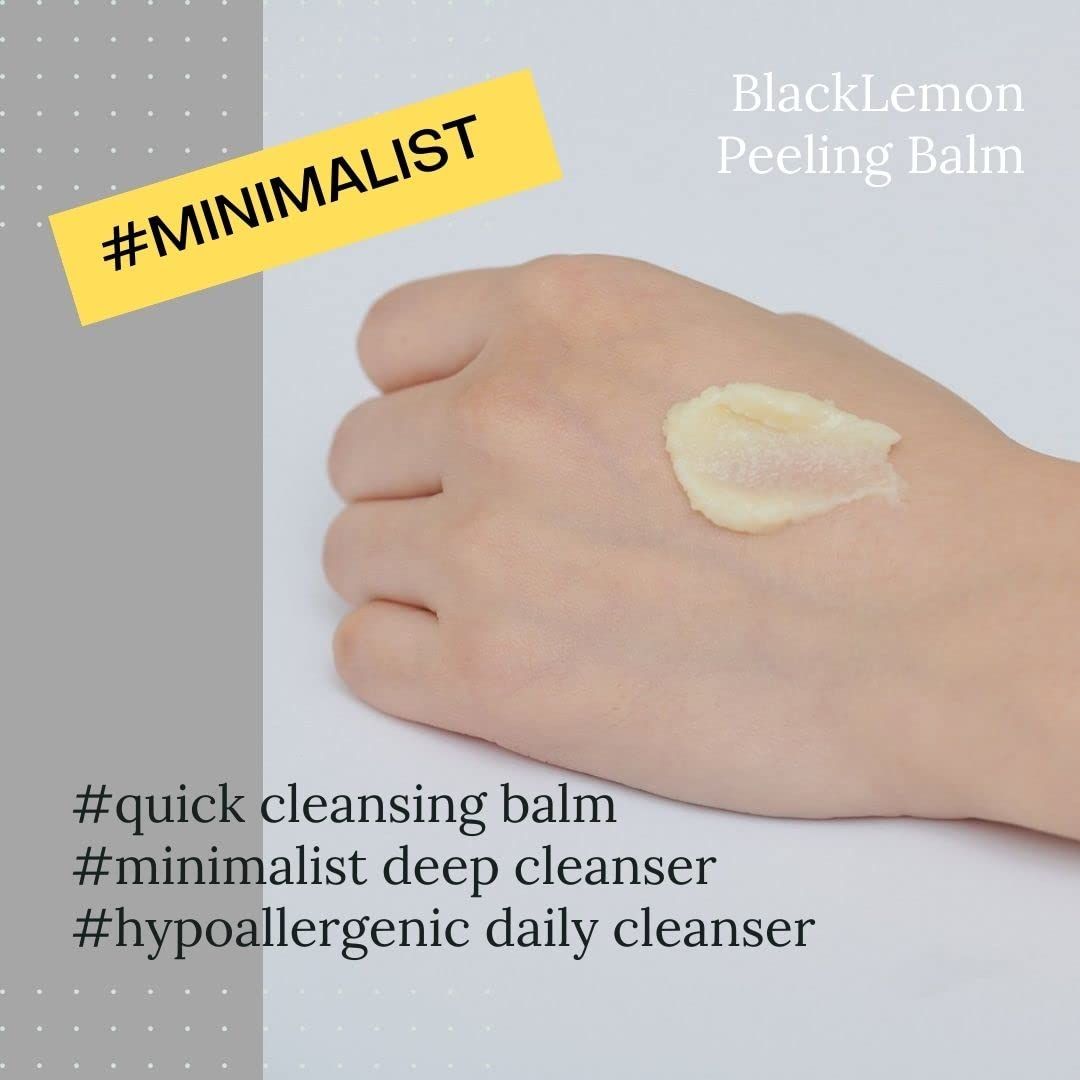 BLACK LEMON PEELING BALM 120gr 365 DAYS hypoallergic daily Peeling Cleanser Balm Peeling Cleanser Balm helps remove dead skin cells without irritation with Bambusa Arundinacea Stem Powder, even if used every day. Just Finish with One Try #Minimalist deep cleanser Peeling balm 2 in 1 Makeup remover + Peeling All in one solution Peeing Balm leaves skin clean without a greasy feel. Soft Sherbet Texture The moment you roll it on your skin, it changes from a balm type to a sherbet type. It gently cleanses skin without irritation. Recommended for consumers with these concerns #gentle cleanser #quick cleansing balm #dead skin cells care #all in one cleanser #purifying #exfoliating The consumer who wants to cleanse the makeup without irritation The consumer who wants to exfoliate the skin and get rid of pore-clogging dead skin cells The consumer who wants to restore skin's natural barrier after cleansing