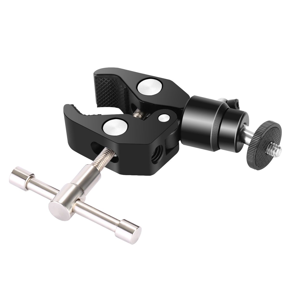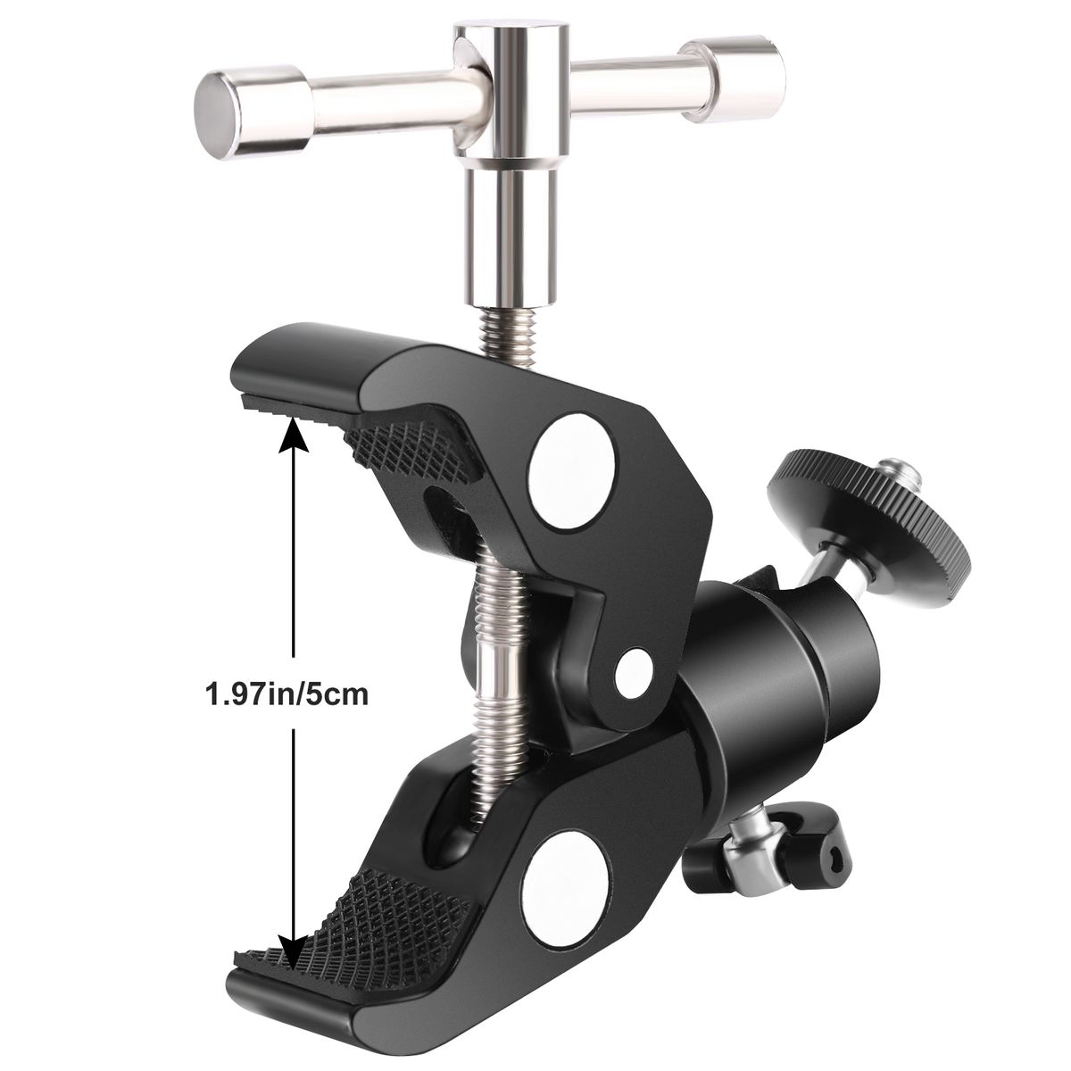 LARGE SUPER CLAMP: The super clamp can max open 2.28 inch/5.8 centimeter, and min 0.4 inch/1 centimeter rods; It is a very versatile and useful tool especially for holding the monitor and DSLR camera