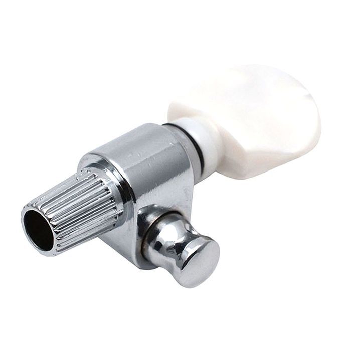 Chrome Banjo 5th Geared Tuning Peg Tuner Machine Head with White Pearl Button.