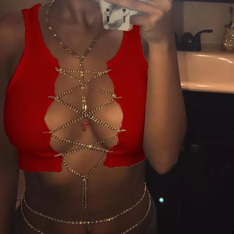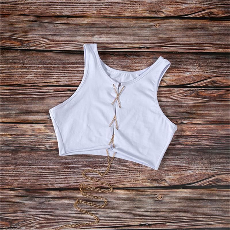 Top de cadena de Metal para mujer Top corto sin mangas Sexy para discoteca ajustable con cordones camisetas sin mangas camisola