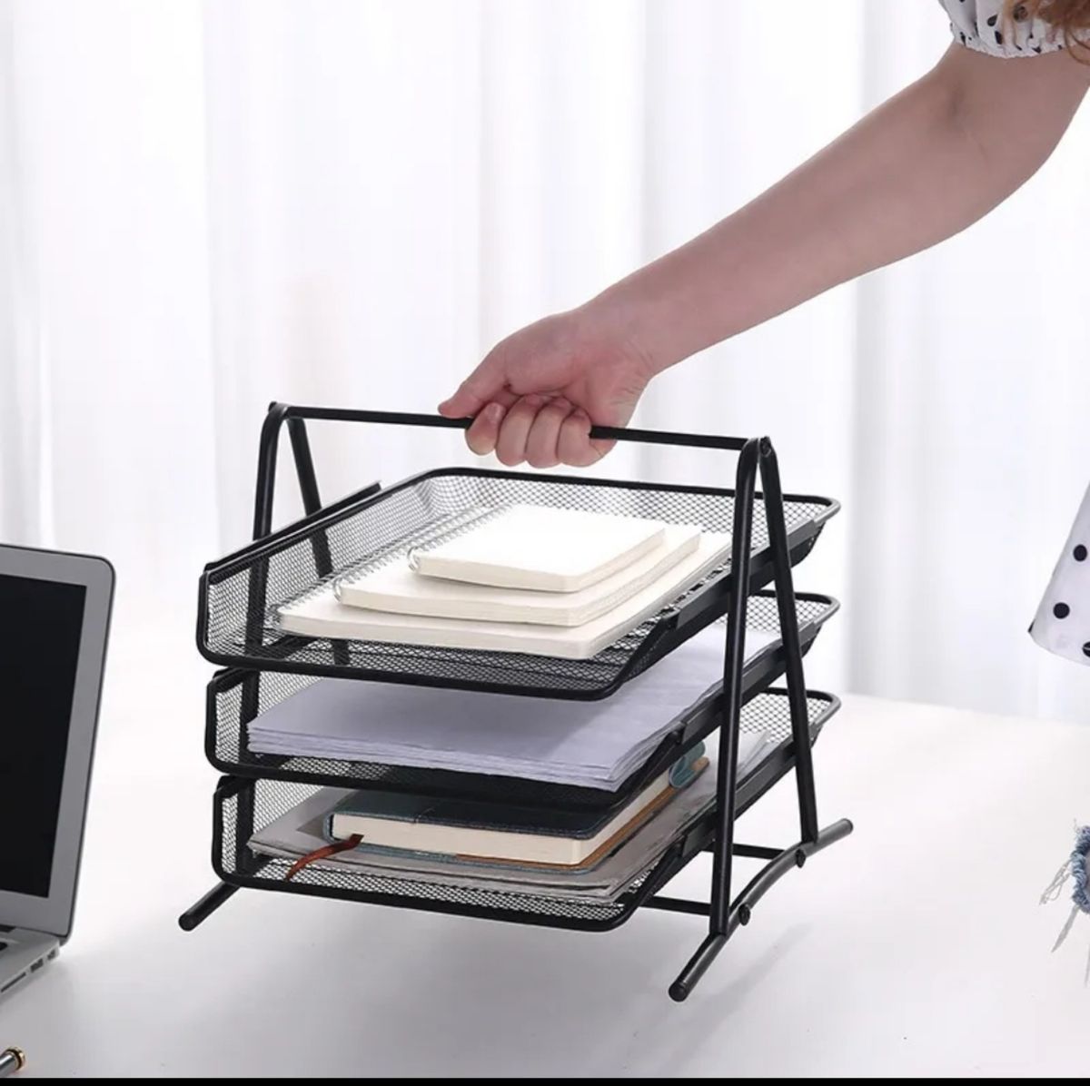 ENOUGH SPACE FOR EVERYTHING. 3 tier pull out trays of well-thought out dimensions that will keep the stuff you need at hand, while staying out of your way.EASY ACCESS THAT MOVES WITH YOU. Our desk organizer\'s front-loading pull out trays slides out smoothly and goes right back easily for easy storage that\'s right there when you need it.THE LIGHTWEIGHT HEAVYWEIGHT. Made of sturdy, mesh metal and a solid metal base, this one\'ll take all the papers you can throw at it, while being none the worse for wear.LOOKS GREAT ON YOUR DESK. A smooth ABS coating feels great to the touch, while the smooth, rounded edges and trim add to the visual appeal. Four soft rubber grips protect your deskUSE RIGHT OUT OF THE BOX. Easy 3 minute assembly comes with a free double head screwdriver and step by step instructions manual. Dimensions: 11.75inchW x 13.75inchL x 10.5inchH (tray is 9.5inchW)An uncluttered space is an uncluttered mind.With all the thinking, planning, dreaming, envisioning, drafting, creating, and strategizing you\'re doing each day, give your mind the gift of space. The 3 tier mesh metal desk tray organizer from our mesh collection is designed to store your office consumables in an airy yet sturdy compact desk organizer that feels at home in your office space - or any space.Finally have a place where you can store your important documents, papers, notes and files, and keep your desk well organized and clutter-freecolour: SilverMaterial: metalPackage Contents:1 * File holder.ENOUGH SPACE FOR EVERYTHING. 3 tier pull out trays of well-thought out dimensions that will keep the stuff you need at hand, while staying out of your way.EASY ACCESS THAT MOVES WITH YOU. Our desk organizer\'s front-loading pull out trays slides out smoothly and goes right back easily for easy storage that\'s right there when you need it.THE LIGHTWEIGHT HEAVYWEIGHT. Made of sturdy, mesh metal and a solid metal base, this one\'ll take all the papers you can throw at it, while being none the worse for wear.LOOKS GREAT ON YOUR DESK. A smooth ABS coating feels great to the touch, while the smooth, rounded edges and trim add to the visual appeal. Four soft rubber grips protect your deskUSE RIGHT OUT OF THE BOX. Easy 3 minute assembly comes with a free double head screwdriver and step by step instructions manual. Dimensions: 11.75inchW x 13.75inchL x 10.5inchH (tray is 9.5inchW)An uncluttered space is an uncluttered mind.With all the thinking, planning, dreaming, envisioning, drafting, creating, and strategizing you\'re doing each day, give your mind the gift of space. The 3 tier mesh metal desk tray organizer from our mesh collection is designed to store your office consumables in an airy yet sturdy compact desk organizer that feels at home in your office space - or any space.Finally have a place where you can store your important documents, papers, notes and files, and keep your desk well organized and clutter-freecolour: SilverMaterial: metalPackage Contents:1 * File holder