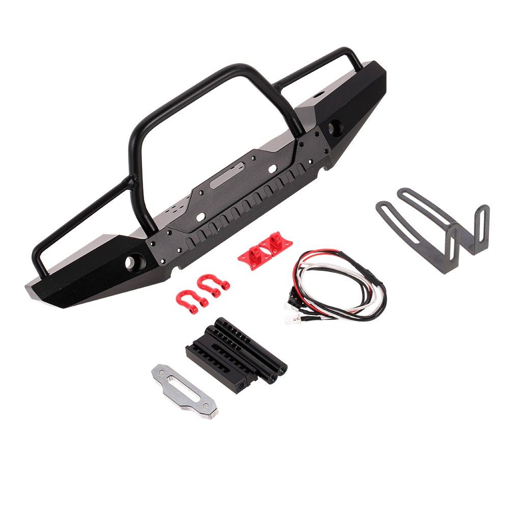 Metal Front Bumper with 2 LED Light Lamp for Traxxas TRX-4 SCX10II 90046 1/10 RC Crawler