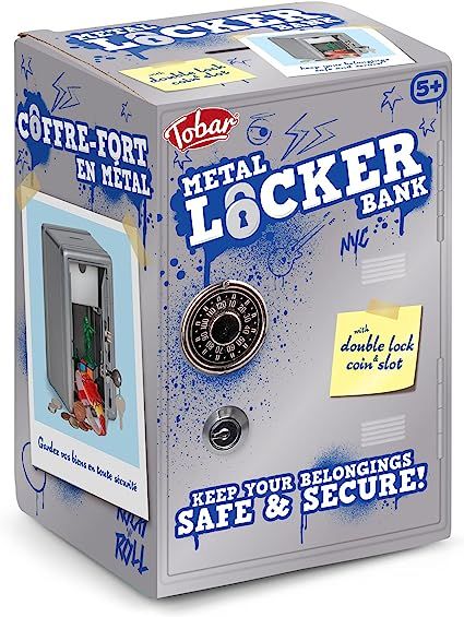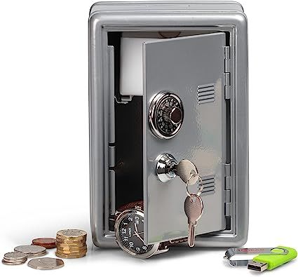 Drop your coins into the belly of this mini metal safe to keep them locked down behind a key and number dial lock. There's even space under the coin tray to store a fistful of other valuables, assuming you don't have hands like Mike Tyson.5 years and up