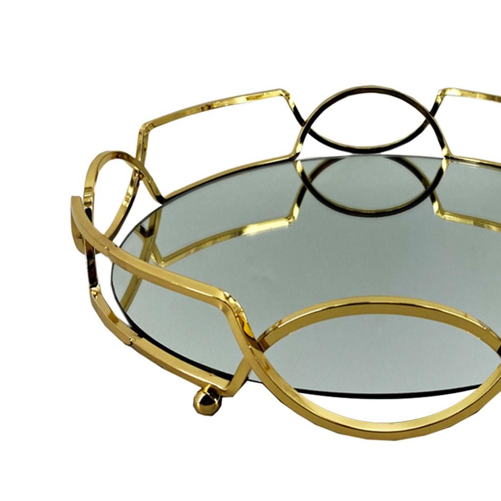-Noble golden mirrored serving tray for storing your daily essentials- attractive, outstanding, elegant, stylish and convenient-Wide application- Displaying Jewelry, Organizing Jewelry, Vanity, , Brush, , Flower vase, Serving drinks, Serving Fruit and more-Decorative metal tray which is made from hand crafted polished metal and finished with an elegant mirrored glass surface for those decorative pieces at home.-Flower shape with round base design simple and novel, retro gold, as if to bring you back to the classical palace.-Serving tray for a dining room centerpiece topped with candles, a decorative adornment for a hallway table or even a way to store make up on top of your vanity table.