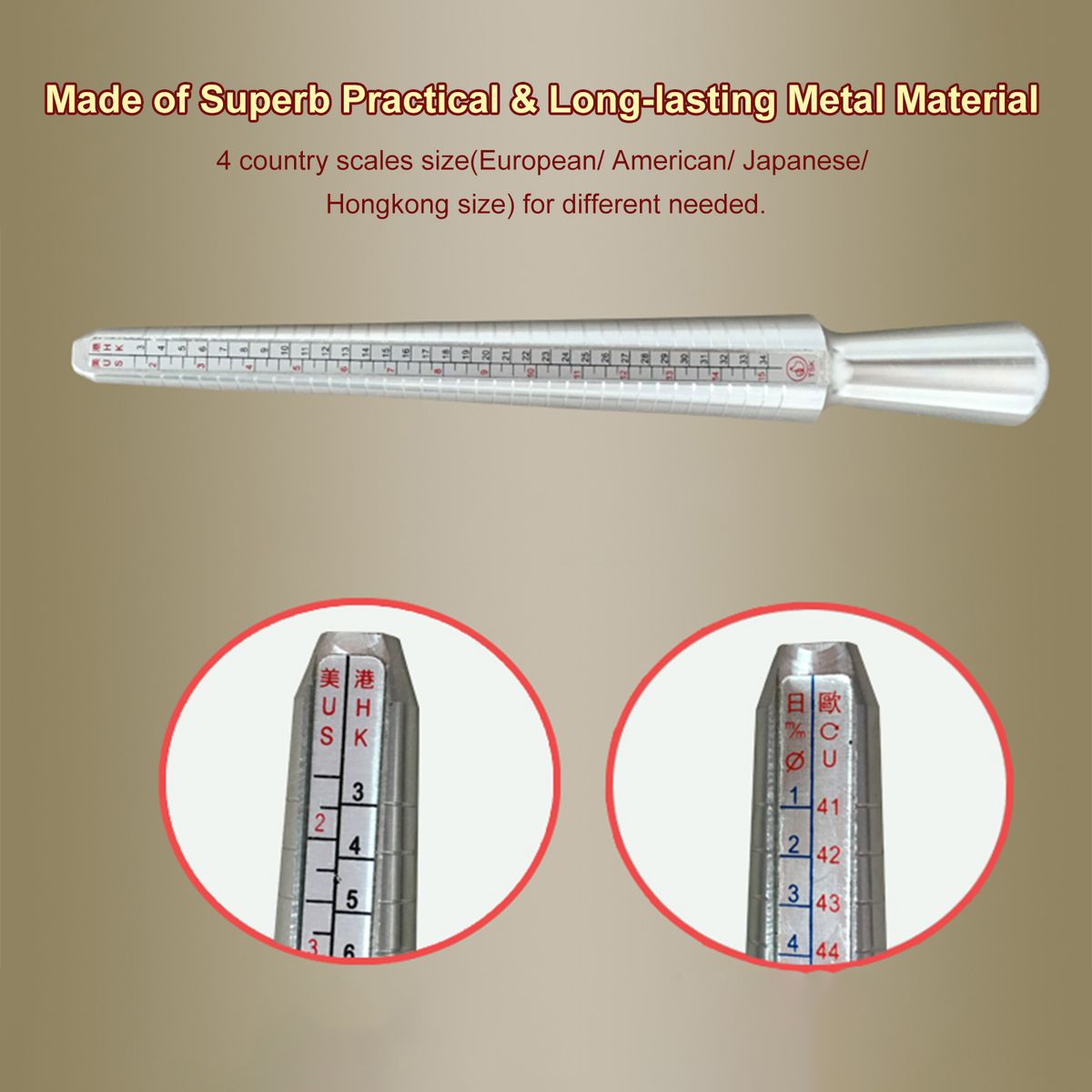 Used to measure the size of your finger, while the size on the stick is your r-ing size.