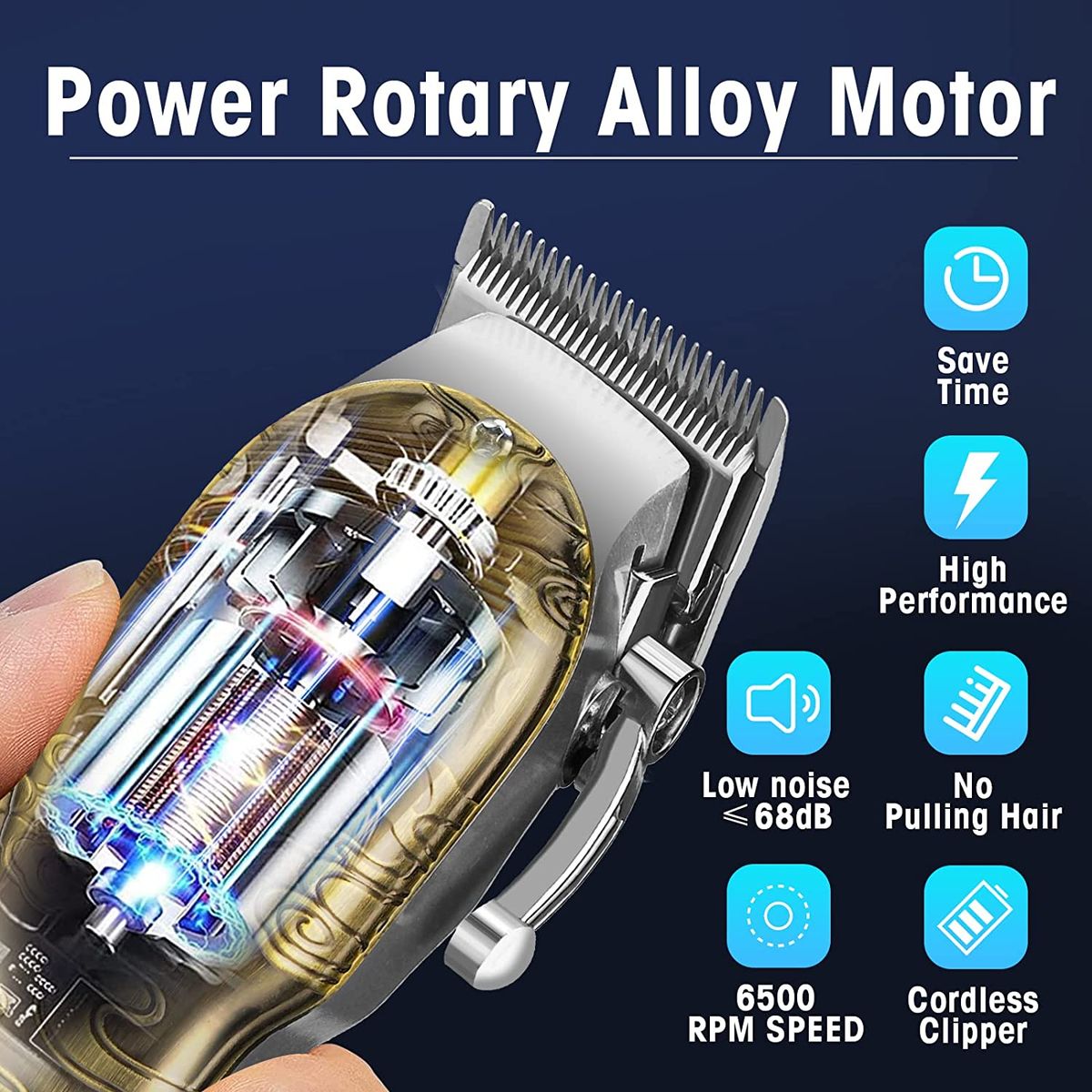 High Speed Motor & Low Noise - Fagaci hair clippers features the most powerful wireless engine, it generates a high rotation speed of 6500 rpm for excellent cutting power and fierce low-noise sound.