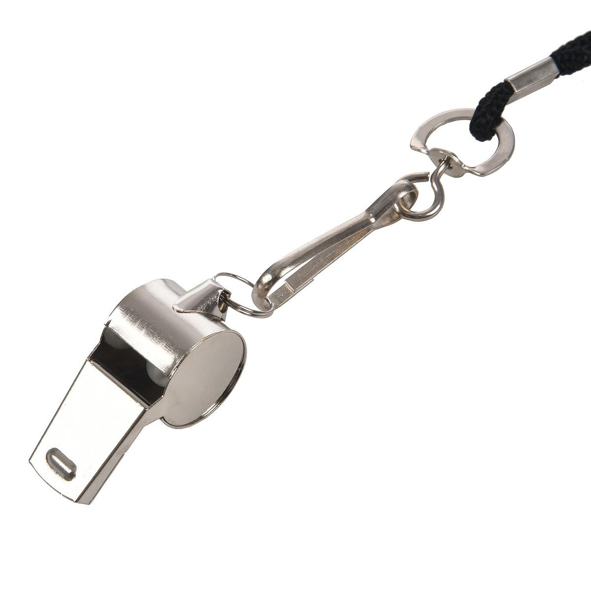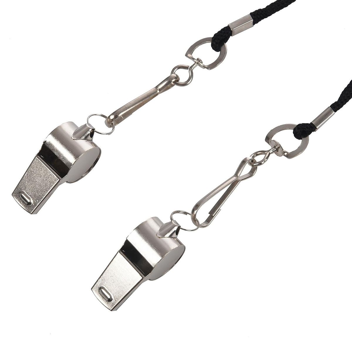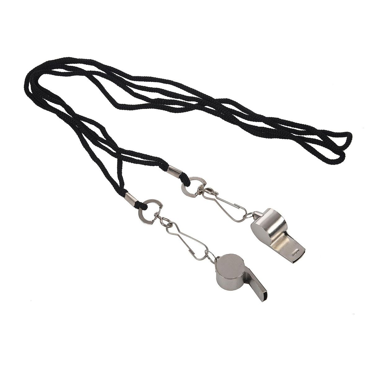 Stainless steel whistles with lanyard have crisp sound, suitable for referees, coaches, training, instructors, sports, teachers, lifeguards, self defense, survival, emergency, herding, training bird or dog, etc.
