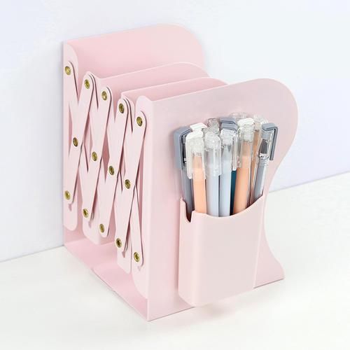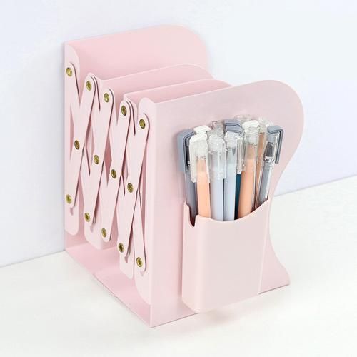 Retractable Bookends For Shelves Book Support Stand Adjustable Bookshelf With Pen Holder Desk Organizer Office Accessories